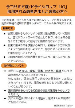 ラコサミド錠/ドライシロップ「JG」服用される患者さまとご家族の方へ