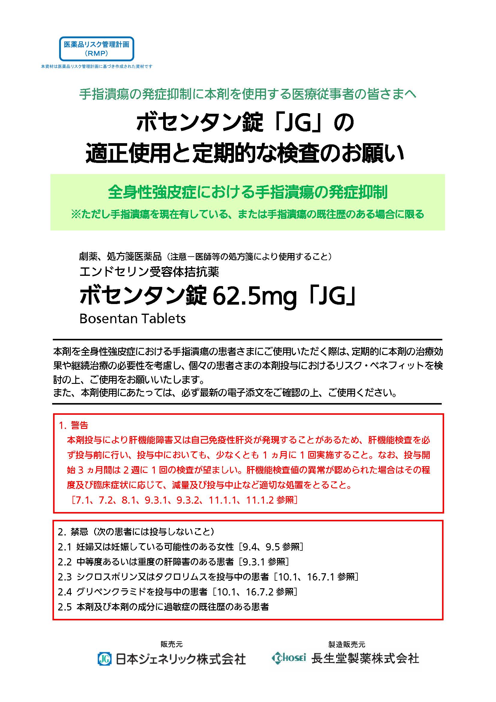 ボセンタン錠「JG」の適正使用と定期的な検査のお願い