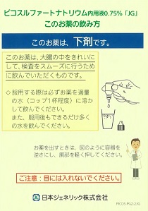 ピコスルファートナトリウム内用液0.75%「JG」このお薬の飲み方(大腸検査前処置用)