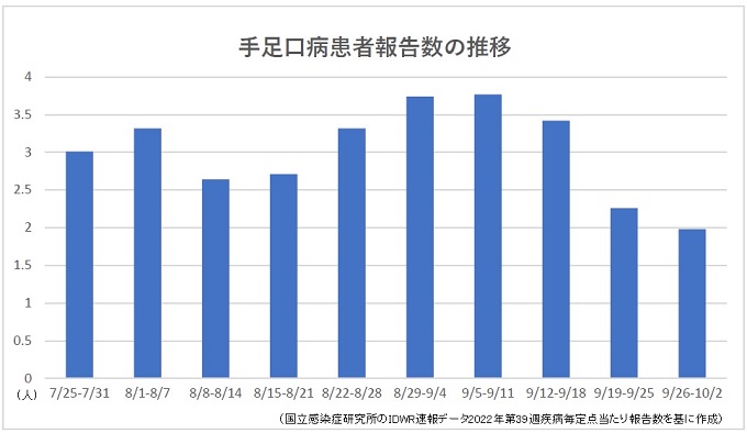 【感染症情報】手足口病患者報告数が3週連続減少