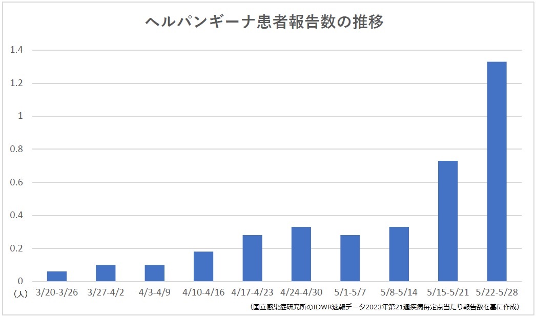 【感染症情報】ヘルパンギーナが3週連続で増加