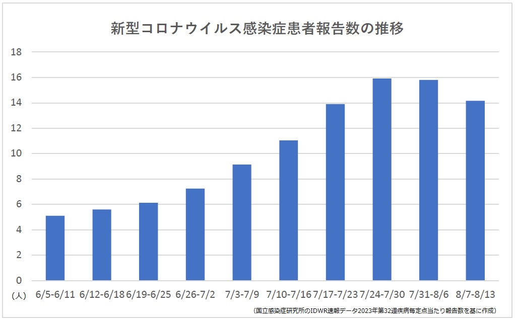 国立感染症研究所がまとめた7日から13日までの1週間(第32週)の5類感染症の患者報告(小児科定点医療機関約3,000カ所、インフルエンザと新型コロナウイルス感染症は定点医療機関約5,000カ所、速報値)によると、ヘルパンギーナとRSウイルス感染症の定点医療機関当たりの患者報告数が5週連続で減少した。新型コロナウイルス感染症、感染性胃腸炎、インフルエンザ、手足口病は2連続で減った。